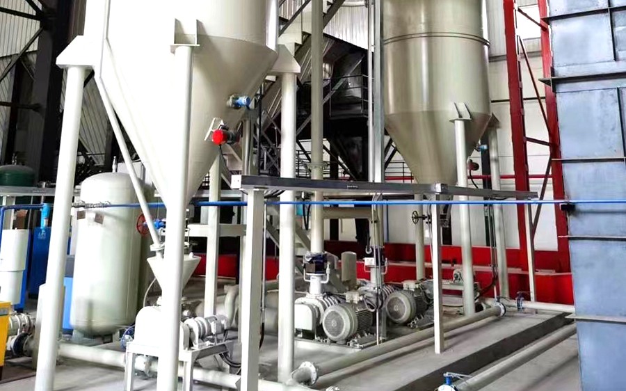 集中供料系統采用一臺機一根管,密封式回路設計方式,保證整個系統運行穩定,絕無回潮、堵料現象發生。
